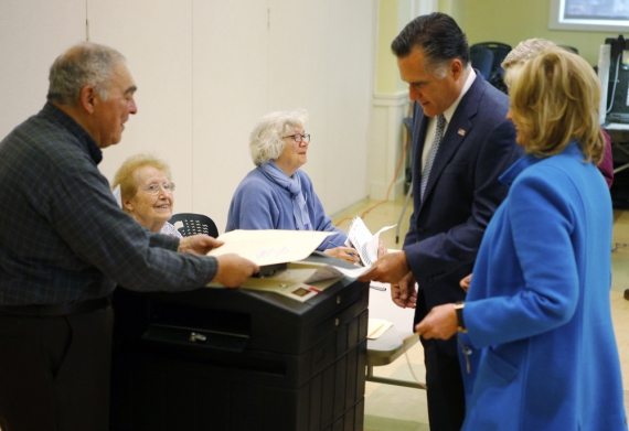 Кандидат у президенти від Республіканської партії Мітт Ромні і його дружина Енн Ромні проголосували у вівторок вранці на виборчій дільниці недалеко від будинку в місті Бельмонт (штат Массачусетс), повідомили в штабі республіканця.