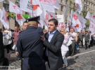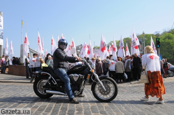 Спочатку вони стояли з різних сторін площі та тримали прапори опозиційних політичних сил: "Батьківщина", "Фронт Змін", "Народний рух України".