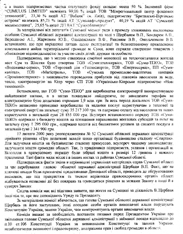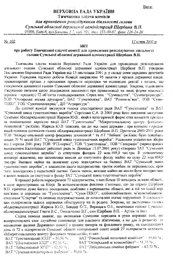 Народний депутат від "Батьківщини" Геннадій Москаль виклав на своєму сайті Звіт Тимчасової слідчої комісії Верховної Ради України, яка розслідувала діяльність голови Сумської ОДА Володимира Щербаня.