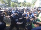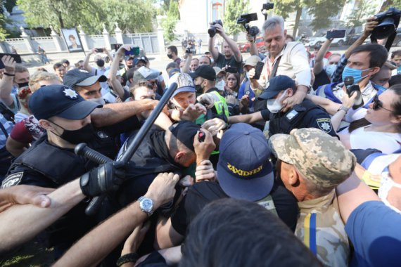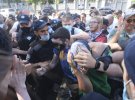 Між поліцією і людьми, які збираються брати участь в акції "Руки геть від мови!" проти скандального законопроєкту нардепа від "Слуги народу" Максима Бужанського, сталася сутичка.