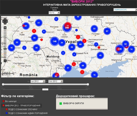 Карта запущена з 1 жовтня для відображення на електронній карті щоденної інформації про зареєстровані правопорушення. На карті відображаються повідомлення про кількість правопорушень під час передвиборчого процесу, пише "Українська правда".