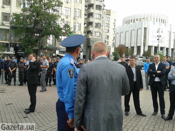 Як повідомляє кореспондент Gazeta.ua, зараз на протилежній стороні від Українського дому відбувається акція "Свободи". Там зібралися кілька десятків людей, зокрема декілька народних депутатів. Як тільки вони почали свою акцію, одразу по периметру вистроїлися кілька десятків "беркутівців". Однак поки пікетувальникам не заважають.