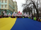 Раніше мітингувальники зібралися на Соборній площі та колоною рушили до пам'ятника Тарасові Шевченку на Центральній площі. На початку колони активісти розгорнули величезний жовто-синій прапор.