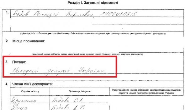 Генеральний директор ТОВ "Панда" і кандидат у нардепи від Партії регіонів по мажоритарному виборчому округу №196 Геннадій Бобов настільки впевнений у своїй перемозі на виборах, що навіть у декларації, поданій до Центрвиборчкому у графі "посада" написав: "Народний депутат України".