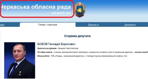 Насправді Геннадій Бобов є депутатом Черкаської обласної ради, що засвідчує і сайт облради.