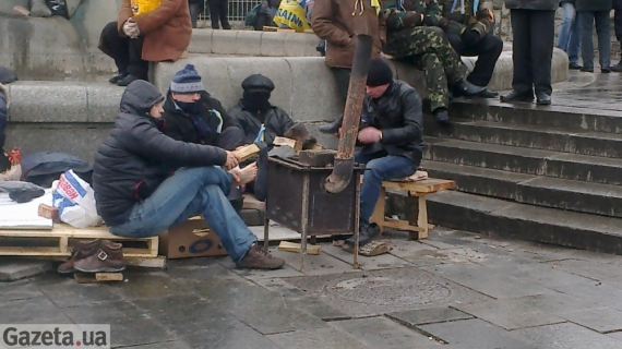 "Ноги пітніють, бо багато ходимо. Щодня змінюю по дві-три пари носків, - розказує Скляренко. – Зараз стояти важко, бо вітер морозний. Шкода, що у грудні бабиного літа не буває. На потепління вже надіятися марно. Кажуть, що скоро буде до мінус 10. Але стояти мусимо".