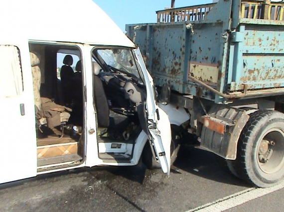 Даішники повідомили, що водій маршрутки, рухаючись у напрямку Харкова, не впорався з керуванням та влетів під "КамАЗ" з причепом, який рухався попереду в попутному напрямку.