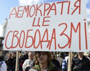 "Це останній дзвінок Януковичу і всім тим, хто обмежує свободу слова. Хай вони бояться цього дзвіночка", - закликали організатори зі сцени.