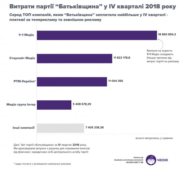 "Усі ці видатки здійснено з приватних внесків, а не з держбюджету. Залучена ВО "Батьківщина" сума коштів на рекламу "Нового курсу" є рекордною порівняно з іншими політичними партіями", - наголошує видання.