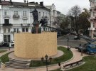 На пам'ятник натягнули чорний пакет, закрили дерев'яною огорожею. Про це повідомили "Суспільне".