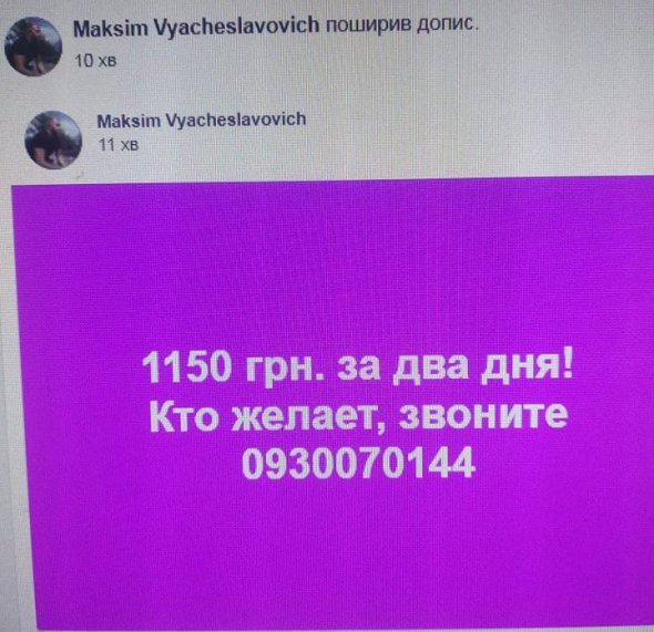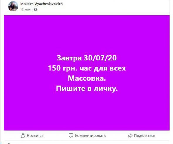 29 липня у Facebook з'явилося оголошення: "Завтра 30/07/20 150 грн час для всех. Массовка. Пишите в личку". За деякий час оголошення змінили на: "1150 грн за два дня! Кто желает - звоните".
