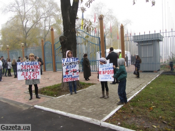 Перед початком саміту декілька жінок і дітей провели пікет з плакатами: "Донецьку не потрібна Європа. Тільки гроші"!, "Земляк, президент, допоможи дітям"!. Мами з дітьми протестували проти забудови свого двору на проспекті Дзержинського. Вони роздавали журналістам віддруковані звернення: "Запитаєте у президента - коли його однопартійці перестануть порушувати закон"?.