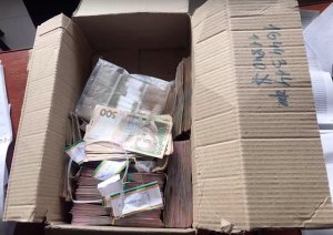 При цьому в штабі знайшли і заготовлені для підкупу виборців гроші: у національній валюті і у доларах. Загальна сума склала 1 963 994 грн. (1 644 314 у гривнях та 11 840 у доларах). Зберігали цей статок у звичайній картонній коробці.