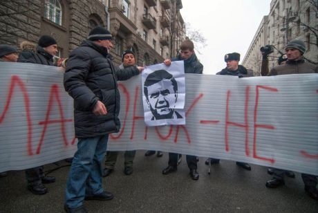 ЧИТАЙТЕ ТАКОЖ: Під АП міліціонери затримали трьох активістів за розгорнутий плакат Януковича