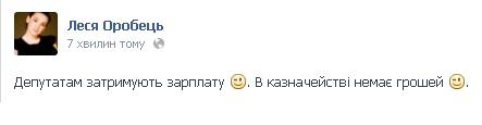 "Депутатам затримують зарплату. В казначействі немає грошей" - написала вона.