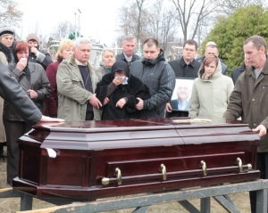 Близько години священики правили службу. Біля труни стояли донька та сиділа мама депутата. У церкву прийшли більше сотні людей. За 5 хвилин до закінчення служби прийшов спікер ВРУ Володимир Литвин із букетом червоних троянд. Поховають депутата Головченка сьогодні.