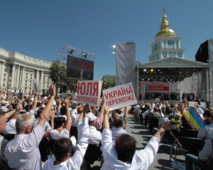 На сцені присутні також Арсеній Яценюк, Анатолій Гриценко, Олег Тягнибок, Андрій Павловський та інші.