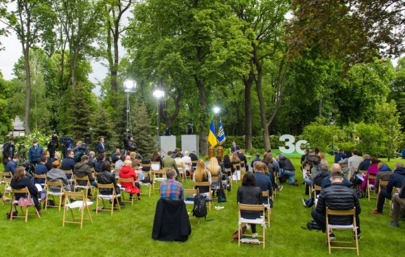 Журналістів зібрали на галявині біля Маріїнського палацу. Зеленський відповідав на запитання три години.
