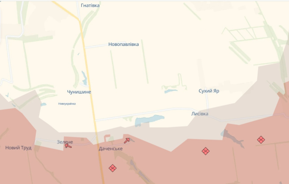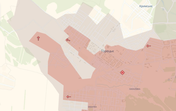 Ворог просунувся в Часовому Яру, Торецьку, Янтарному, Нововасилівці, біля Єлизаветівки, Зеленого, Звірового та Котлиного, повідомив аналітичний проєкт DeepState.
