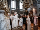 Біля вівтаря поставили білі квіти, а священики вдягли білі вишиті шати.