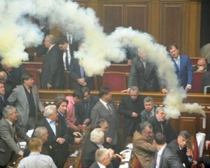 Нагадаємо, 27 квітня перед розглядом питання щодо ЧФ РФ в Криму в сесійній залі Верховної ради були заблоковані сектори БЮТ і НУ-НС, проте через димові шашки прапори з секторів довелося зірвати, і депутатські місця виявилися зайняті.