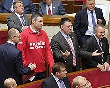 В опозиції закликали владу "сісти за стіл переговорів" і створити у Верховній раді тимчасову спеціальну комісію, яка розробить узгоджений документ. "У Партії регіонів розуміють - щоб прийняти цей законопроект в цілому, необхідна конституційна більшість - понад 300 голосів, а це неможливо без опозиції, так що їм доведеться йти на компроміс", - заявив глава фракції УДАР Віталій Кличко.