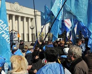 Рух по вул Грушевського біля Кабміну та парламенту перекрито. Вздовж паркану ВР стоять палатки прихильників Партії регонів. Прибічників провладної коаліції усього близько 3 тисяч. Вони тримують у руках прапори України та ПР.