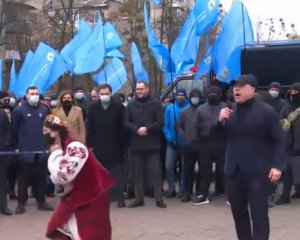 У вівторок біля посольства США в Україні представники проросійської ОПЗЖ тягали на мотузці дівчину, одягнуту у вишиванку і вінок.