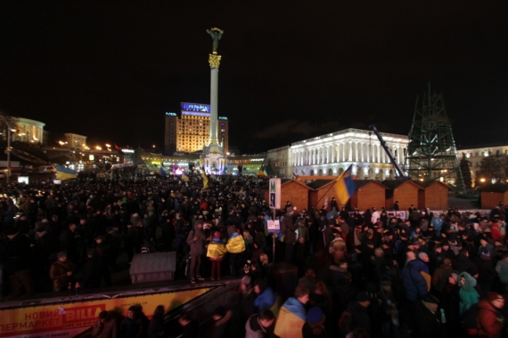 На шостий день акції "Євромайдан", присвяченому підтримці євроінтеграційного курсу країни, зібралося близько 10 тисяч людей. Вони приїхали з усієї України, є навіть столик, де записують охочих переночувати в місцевих. Кияни із радістю приймають у себе гостей міста.