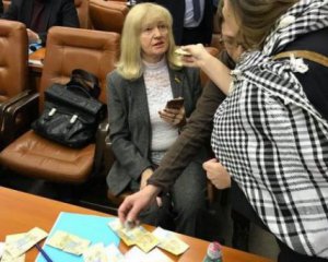 Кілька активістів, підійшовши до робочого місця депутата з криками "Бідним потрібно допомагати" закидали стіл одногривневими купюрами.