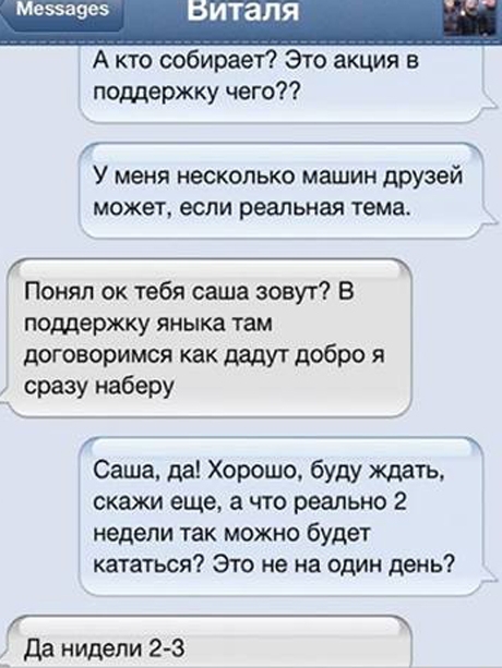 За її словами, один з "супервайзерів" підтвердив інформацію, що їздити Києвом треба "в поддержку яныка (Януковича)".