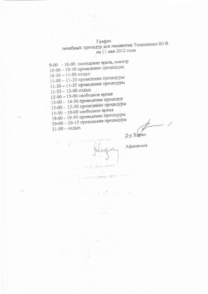 У відповідь на інформаційний запит Державній пенітенціарній службі України отримано графік лікувальних процедур для засудженої екс-прем'єр-міністра Юлії Тимошенко.