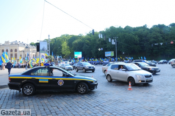 У п'ятницю вранці біля "Українського дому" в Києві збирається близько 1,5 тисячі людей. Тут має розпочатися прес-конференція президента Віктора Януковича, на яку акредитувалися 440 журналістів. В руках тримають прапори та парасольки із символікою Партії регіонів. Розгортають плакати із написами: "Український народ разом з президентом", "Янукович - наш президент", "За народ, за президента".
