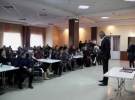 О 12:15 в залі їдальні заводу "Фотоприлад" прийшли близько 120 осіб: прихильники Булатецького та "Батьківщини", представники ОВК, ДВК та інші кандидати в депутати. В їдальні холодно. Люди сидять у верхньому одязі. Попередній форум проходив у залі обласного краєзнавчого музею. Після того звідти звільнили директора. Тому цього разу зал для зустрічі довелося шукати довго.