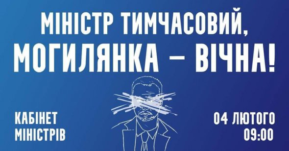 Акцію "Міністр тимчасовий, Могилянка - вічна!" анонсують у соціальних мережах. Поширюють хештег #savemohylyanka. Збиратимуться завтра, 4 лютого, на 9.00.