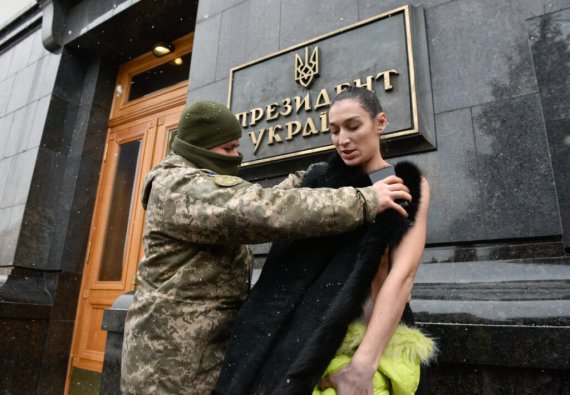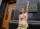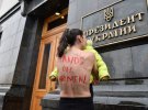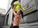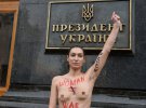 У Києві активістка руху Femen влаштувала пікет під Офісом президента. Жінка прийшла туди з дитиною й оголилася.