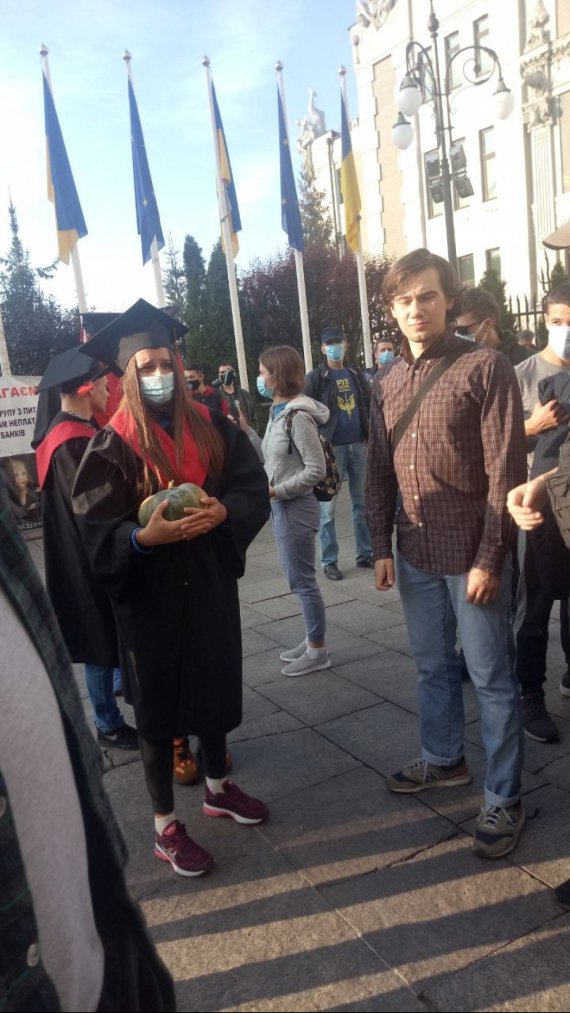 Учасники акції вимагають відставки Шкарлета. Студенти принесли йому гарбуза.