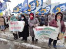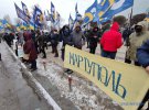 Мітингувальники стоять з обох боків дороги навпроти входу до суду, повідомив "Укрінформ".