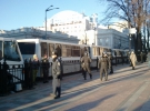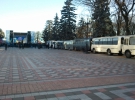 Трохи далі біля центрального входу парламенту мітингує близько трьох сотень із прапорами "Свободи", УДАРу і "Батьківщини". Вулиця Грушевського перекрита. Навколо паркану ВР більше 30 автобусів, а під будівлею близько тисячі "беркуту".