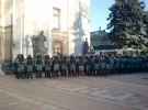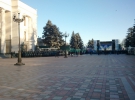 Біля першого під'їзду встановлена сцена, біля якої знаходиться близько двох сотень людей. Перед присутніми виступає колишній нардеп регіонал Олег Калашніков. Він зауважив, що тут зібралися люди на підтримку президента України.
