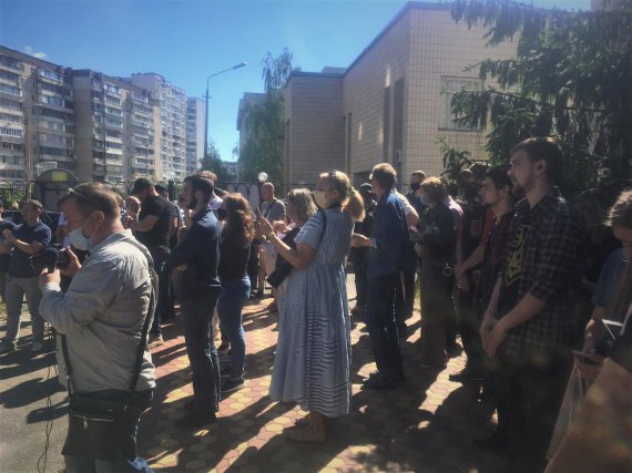 Перед будівлею суду зібралися прихильники Кіпіані, представники "Руху опору капітуляції", "Свободи", "Національного корпусу". Загалом майже 100 людей, повідомляє "Громадське радіо"