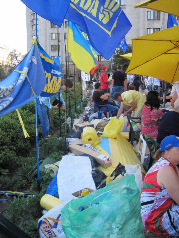 - Ми не покинемо сходи дому, боротьба тільки починається. Опозиція тут тільки попіарилась, а простих людей, які прийшли підтримати рідну мову просто кинули. Сьогодні ночувати тут залишились самі найбільші патріоти, ане проплачені люди — розповів активіст Ігор Соловейко.