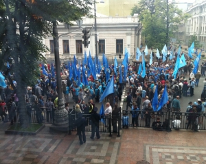 Ближче до будівлі парламенту за парканом знаходяться кілька сотень представників ВО "Свобода". Разом з тим на площі біля самої ВР дислокуються мітингувальники із символікою ПР.