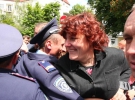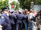 Близько 30-ти співробітників Печерського управління міліції зупинили активістів біля пішохідного переходу на вул. Лютеранській 23, не пускаючи людей у двір адміністрації. Активісти проривались через колону міліціонерів.