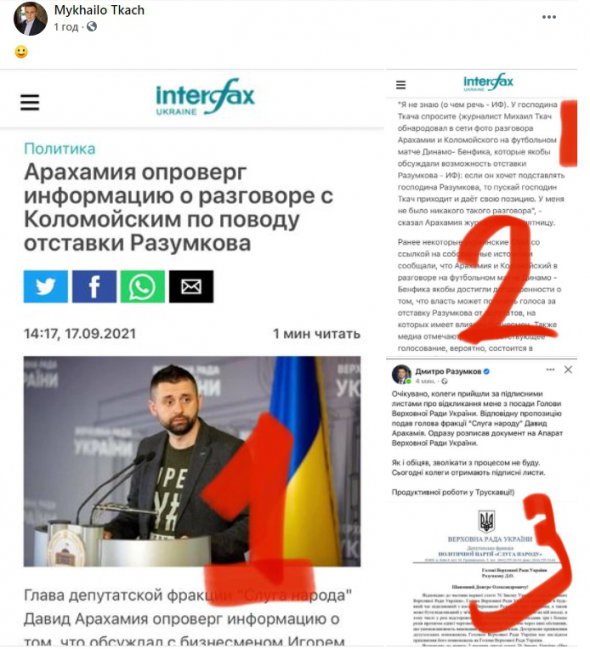 Голова фракції "Слуга народу" Давид Арахамія звернувся до голови Верховної Ради Дмитра Разумкова видати підписні листи за відкликання чинного спікера.