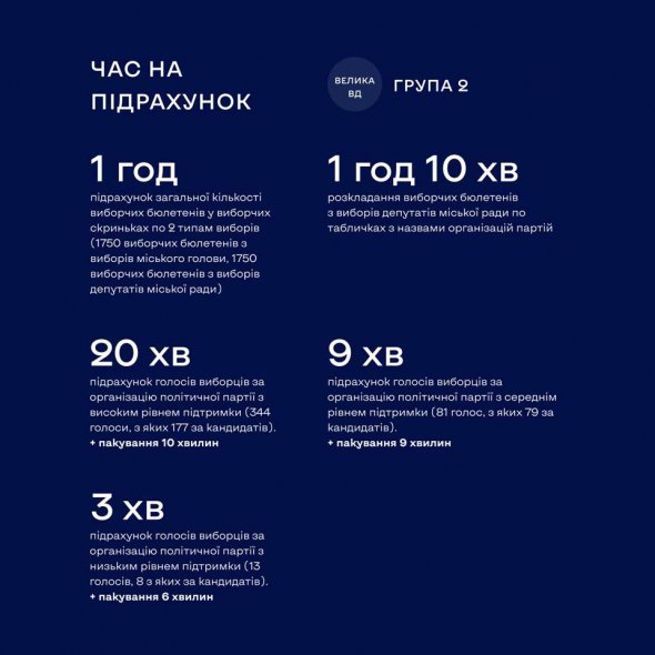 Наприклад, занесення відомостей — повних назв 15 місцевих організацій партій та ПІБ кандидатів у депутати (5 організацій партій по 7 кандидатів, 5 – по 9 і 5 – по 12) до одного примірника протоколу "від руки" зайняло 1 год 40 хв. І це за умови, якщо під час занесення секретар комісії допомагає іншому члену комісії та надиктовує ПІБ кандидатів.