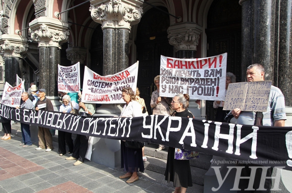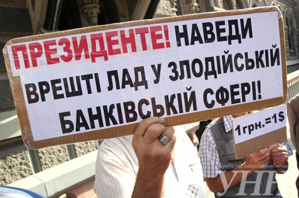 Біля Національного Банку України в рамках Акції "1 грн. = 1 дол. США" відбувся мітинг з метою забезпечення стабілізації та укріплення валютного курсу гривні. Активісти вимагали провести люстрацію у відомстві, стабілізувати та укріпити валютний курс гривні. Також кредитні позичальники вимагали припинити спекуляції на валютному ринку.