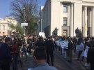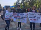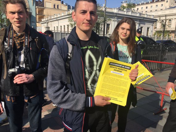 Учасники вимагають від народних депутатів позитивного рішення щодо цього документу. Тримають у руках плакати з надписами "Мова — це зброя", "Мене захистить лише мовний закон".