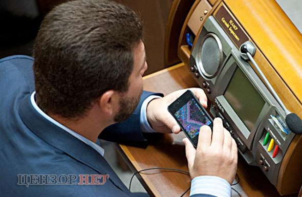 Народний депутат від Партії регіонів Євген Геллер під час виступу міністра освіти Дмитра Табачника грав на телефоні.