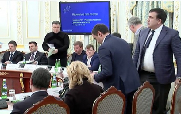 Того дня між міністром внутрішніх справ і главою Одеської облдержадміністрації Міхеілом Саакашвілі трапилася перепалка на засіданні Нацради реформ.